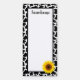 This fridge note pad is shown in a cute black and white country cow print design with a lovely sunflower accent print.