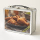 This is a standard metal lunchbox that appears to work just fine. We designed this box ourselves with an uploaded photo and custom text on the front and back. It looks absolutely beautiful except the front of the lunchbox is not centered like it shows in the photo. The print borders don't align with the inset flat part of the box where the preview photo online showed it perfectly centered in there. The back looks nice and centered though.