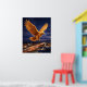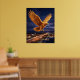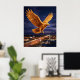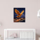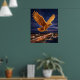 Majestic fried chicken eagle artwork featuring a soaring bird formed from golden crispy crust textures, seasoned breading layers, buttery highlights, and warm roasted tones. Flying above glowing highway lights, diners, traffic trails, city outskirts, and illuminated clouds, this bold fantasy design blends regal wildlife with modern fast-food energy. Perfect for kitchens, game rooms, diners, restaurants, man caves, or collectors of humorous yet premium animal décor.