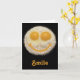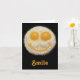 Photograph of two fried eggs with smile added digitally. Text and background color customizable.