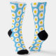 Fun novelty food themed socks patterned with breakfast fried eggs over turquoise blue. Perfect for the foodies in your family!