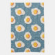 A pattern from fresh fried eggs on a sky blue background. Good morning breakfast :)