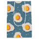 A pattern from fresh fried eggs on a sky blue background. Good morning breakfast :)