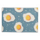 A pattern from fresh fried eggs on a sky blue background. Good morning breakfast :)