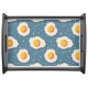 A pattern from fresh fried eggs on a sky blue background. Good morning breakfast :)