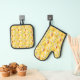 This vibrant fried eggs and bell peppers oven mitt and potholder set, featuring a bold design against a yellow background is perfect for food enthusiasts and those who love a splash of color, with colorful fried eggs and bell peppers, adding a fun, culinary touch to your cooking space. Made from heat-resistant materials, the mitt and potholder provide safety and comfort while handling hot dishes. Whether you're frying up breakfast or baking something delicious, this set is a must-have for any kitchen.