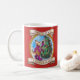 Enjoy a hot cup of tea or cocoa in this mug featuring beautiful Frieda Tails holiday artwork!