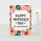 Designed with an ornate, softly scalloped white frame at the center, this card sets a gentle, friendly tone for Mother’s Day 👩. A warm peachy-pink outline traces the frame and gives it a lightly raised look against the deep teal background. Inside the frame, “HAPPY MOTHER’S DAY” sits prominently in dark, classic serif lettering, while “To a special friend” appears beneath it in a smooth, flowing style that feels affectionate ❤️. Around the edges, full roses in blush pink fade from creamy outer petals to deeper rose tones near the maroon centers, as if leaning in close like old friends. Green leaves and small sprigs tuck between the blooms, guiding your eye back toward the message in the middle. Tiny crimson hearts are scattered near the flowers, adding a quiet romantic touch without crowding the design. The deep teal backdrop makes the pale frame and pink roses stand out, with little red hearts nestled among the greenery and petals.