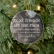 Lightweight, smooth, pure white ornament with nice sheen. Perfect size to be seen from across the room ... and to attract closer inspection! Price was great for ordering enough for the whole family! Clear, bold black design just as requested. Matches the order exactly. Just so nice!