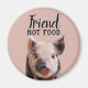 This Friend not food vegan fridge magnet features black text and a cute black and pink piglet on a pink background.