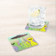 Friendly Aliens & UFO yellow & green Square Paper Coaster