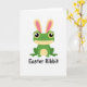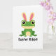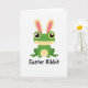 Designed with a white, uncluttered background, this digital illustration centers on an anthropomorphic amphibian in soft greens and creams, with a smooth rounded body and a lighter belly and chin. Its oversized yellow eyes, each with a dark pupil and a tiny highlight, give it a tender, attentive look, like it’s leaning in to greet a close friend. Perched on its head are long bunny ears edged in pale yellow, rising upward with inner pink tones that add a spring touch 🐰. The mix of frog-like features and bunny ears creates a gentle, humorous contrast without feeling busy. The simple shapes and limited color palette keep the focus on the character’s warm expression and approachable pose. Beneath the figure, a short phrase sits centered near the bottom in rounded black lettering, spaced neatly so it feels calm and easy to read 🌷. The ears stretch high above the head while the small black text rests below, framing the character in a balanced top-to-bottom layout.