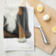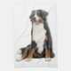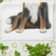 Original fine art design of a friendly Bernese Mountain dog by artist Carolyn McFann of Two Purring Cats Studio printed on a quality American Mojo kitchen towel for canine art fans.