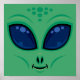 A friendly cartoon green alien face is featured prominently with large expressive eyes. Great gift for alien lovers. Perfect present for science fiction fans. Tags: alien, space, martian, extraterrestrial, believe, cartoon, humor, science fiction, vector, sci-fi, creature, cute, UFO, outer space, being, friendly, green, blue, smile, face