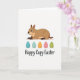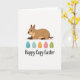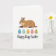 This card features a friendly, large rodent-like animal in warm brown shades, stretched out comfortably and looking to the left with a tender, almost affectionate smile that feels like it’s meant for someone special. Its round eyes and soft shading give it a calm, gentle presence, like it’s quietly keeping a friend company. Beneath the animal sits a neat row of five decorated eggs that brings a springtime touch 🌷. The eggs are colored deep teal, pale blue, orange, pink, and lime green, each covered with fine swirls, dots, and zigzag lines that add charm without crowding the space 🐰. The background stays plain white, keeping the focus on the cozy brown figure and the bright egg colors. Below the eggs, a flowing line of dark lettering is centered near the bottom, acting as the main message area. The teal egg shows small curl patterns along its middle, while the lime green egg has tiny dots and short zigzags near the top edge.