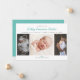Introduce the newest member of your family to the world with this fun three photo birth announcement. All of the text on the announcement is editable and customizable. The color on the back of the announcement is also customizable.