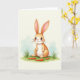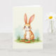 Designed with a friendly, rabbit-like character placed front and center, the illustration shows it sitting calmly and looking straight at the viewer 🐰. Its coat is tawny orange with faint light stripes, paired with a creamy white belly and a small fluffy tail that adds a cozy touch. Two long upright ears with soft pink interiors lean slightly like they’re listening closely, giving the scene a gentle, companionable feel. Large dark eyes with tiny highlights and a small pink nose sit above a subtle smile, like it’s sharing a quiet moment with someone nearby. Fine whiskers fan out from its cheeks, and the character rests in a small patch of bright green grass with a few orange root vegetables scattered in front. The background fades into a pale blue-green wash, keeping the setting open and airy while letting the warm colors stand out 🌷. There is no text shown, leaving the artwork to carry the message. Crisp outlines and soft watercolor shading define the rabbit’s fur, the pink in the ears, and the orange vegetables against the green grass.