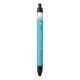 A bright and vibrant turquoise pen tailored to the airline pilot, flight instructor, flight attendant, or aviation engineer. It features a bright turquoise theme with a miniature airplane soaring over clouds on the bottom edge. Next to this miniature plane and above the clouds is the name of the gift recipient in white. It works as a fun and thoughtful gift for someone who works in or loves the business of aviation.