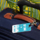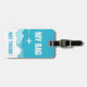 A bright and vibrant turquoise and white luggage tag, which will help you and, most importantly, others to help you identify your unique piece of luggage on the carousel. On the reverse side, you have an area to add your specific identifying information in case of the unfortunate situation that your luggage gets lost.