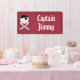 Friendly Smiling Pirate with Crossed Swords on Red Banner
