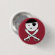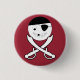 Friendly Smiling Pirate with Crossed Swords on Red Button