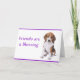 This fun friendship card features a portrait of a beautiful Beagle Pup against a crisp white background with the saying "Friends are a Blessing" in a large purple font..