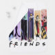 A creative crossover illustration featuring iconic villains styled in the colorful format of the Friends TV show, blending classic animation with pop culture humor.