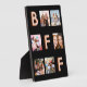 A unique gift for your best friend(s) celebrating your life together with a collage of 6 of your own photos, pictures. A classic black background. The letters BFF are written in rose gold with a balloon style font.