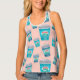 Women's All-Over Print Racerback Tank Top, White Piping, S