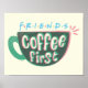 This graphic features the FRIENDS™ logo and the text, "Coffee first."