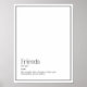This Friends Definition Word Art Poster will give you a good reminder of what a true friend is. This isn't the Websters definition, but that doesn't make it less true. Made in a simple black and white design, this poster gives you an air of formality with a little bit of fun.