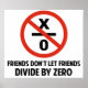 Friends don't let friends divide by zero. Disrupting the fabric of spacetime and imploding the universe is just bad business for everyone. Pretty irresponsible. Great gift or tshirt for the scientifically and mathematically conscious.