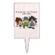 Item turned out as ordered. Super cute! Pick is a little small for a big cake, but it did its job! Very thick sturdy item that wasn't harmed by hand washing. Design and printing for product came out as ordered, free from errors and clear, true to pastel colors shown on item description.