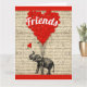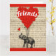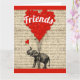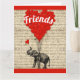 A fun romantic friends Valentines day card, with a cute vintage elephant and red love heart balloons.