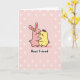 This design shows two rounded, cute animal-like friends cuddling at the center, with the larger one in soft pink and long ears like a bunny 🐰. A small yellow flower sits just behind the pink character’s ear, adding a gentle, affectionate touch as it wraps its arms around a smaller yellow companion. The smaller figure has a red bow on top of its head, and both characters have simple black-dot eyes and faint rosy cheeks that make their closeness feel tender and trusting. The background is a very light pink, covered in a repeating pattern of tiny white cross-shaped marks that give the scene a cozy, quilt-like look. Beneath the hugging pair, the words “Best Friend” are placed in clear, dark lettering, centered and easy to read. The soft pastel colors keep the focus on their embrace, and the way their faces tilt toward each other suggests a quiet bond between close companions 🐇. The red bow stands out against the yellow figure, while the white symbols repeat evenly across the pale pink backdrop.