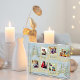 Multi photo display for friends and family with a Holiday season theme and a 6 photo collage. This is our Photo Block Gift: a cherished photo memory keepsake for the holiday season! This customizable treasure features a beautifully washed-out blue background, setting the stage for your cherished memories to shine. The design boasts a dreamy and romantic flair, perfect for adding a touch of nostalgia to your holiday celebrations.