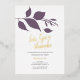 Do Tell A Belle's simple purple and white leaves friendsgiving invitation features a top boarder of simple leaves with gold foil typography. A complimentary plum purple color adorns the back of your invitation. A rustic yet modern choice for your Thanksgiving dinner party or bridal showers. Design and art by Victoria Grigaliunas. To see more visit www.zazzle.com/dotellabelle