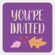 Complete your Friendsgiving invitation set with this coordinating envelope seal! Featuring a rich purple background, bold “You’re Invited” lettering, and whimsical autumn leaves, this sticker is the perfect finishing touch for your festive mailings.