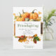 A modern Friendsgiving invitation with a touch of watercolor style. The design features a vibrant watercolor Pumpkins with blended autumn colors. In the center, place a rustic wooden bin overflowing with vibrant pumpkins of various shapes and sizes. The text "Friendsgiving" is clear and inviting creating a stylish and welcoming vibe.