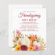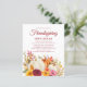 Friendsgiving / Thanksgiving dinner open-house invitation on budget paper. Cheerful fall flowers and autumn leaves with boho watercolor pumpkins and script text in festive colors. Click Customize to change the text, colors, or background.