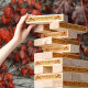 This Friendsgiving topple tower game is the perfect backyard (or rec room) entertainment for your guests while the turkey is roasting! Colorful autumn leaves scattered with acorns and mushrooms. The perfect botanical design for Fall. The soft shades of brown, gold, terracotta, rust, peach, red, and tea green coordinate with almost any fall theme.