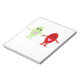 This awesome notepad features a cute cartoon of a smiling red grape holding hands with a smiling green grape, both grapes have shiny black eyes and pink mouths.
