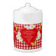 A little teapot covered with bright white daisies, red hearts and golden butterflies especially to make Friendship Tea for a delightful and meaningful gift. Includes recipe for Friendship Tea and a special thinking of you verse. All text may be personalized in template provided. If you have your own special recipe for Friendship Tea, just delete the original and add your own. Matching cup and tea storage jar with this daisy design are available in my store to make the perfect gift for your tea lover friend or loved one. Original art and design by Anura Design Studio