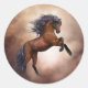 Friesian brown horse rearing up with misty clouds classic round sticker