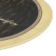 Black Friesian horse with a long wavy mane showing warm yellow highlights from late afternoon sunlight. All on a golden yellow patterned background.