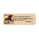 Return Address Labels with an artwork of a black Friesian Horse galloping near the ocean during a sunset.