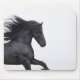 This gorgeous black Friesian stallion runs in the early morning in California.