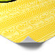A yellow-green friggitello chili pepper, also known as a Greek golden pepper or, in the US, pepperoncini when pickled, is decorated with patterns inspired by designs on ancient Greek amphorae and sits on a yellow background with a smaller version of the same pattern and a script label in the corner. This mild pepper was originally cultivated in Italy and is eaten throughout Europe and the United States.