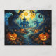 This cool postcard features a haunted house in the moonlight, just outside the forest clearing. You are invited to adjust all the available options as you'd like.