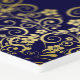 This beautiful wedding seating chart features a simple yet elegant gold and navy blue design with a fancy script calligraphy title, and lacy golden faux foil curls and swirls in the corners. There are seating assignments for 50 people at 5 tables, with 10 names per table. The names of the couple and wedding date are displayed at the bottom. Wonderful way to add a touch of elegance and class to your reception while making it easy for your guests to find their seats.